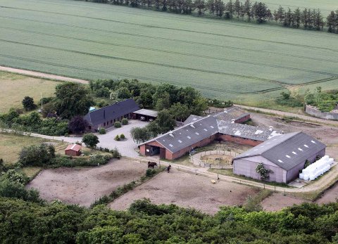 Luftfotos taget i juni mdr i 2014. Vores træningsbane omkranser hele ejendommen.
