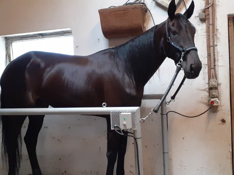Behandling af hestene af massør, kiropraktor og kranioserakralterapi, LTS lysterapi, Bemer, termografering, Catago varmedækken, vibrationsgulv og laser fra Power medic lasers.